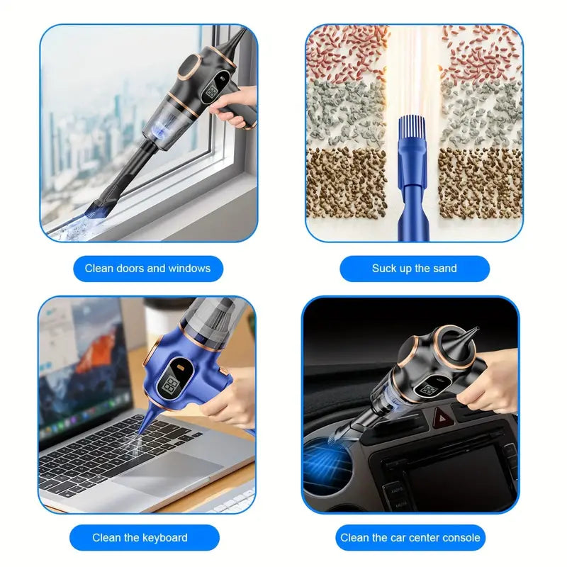 [Wide Use] The car vacuum cleaner can be used as a computer cleaner, laptop cleaner, desktop vacuum cleaner, handheld vacuum cleaner for car, piano, pet house, office cleaning, etc. Two head styles for all kinds of waste and deep cleaning.